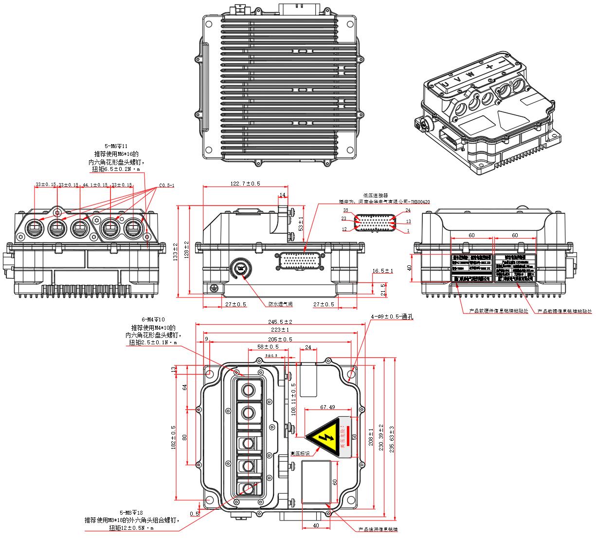 Ce produit est adapté à divers domaines tels que les micro-véhicules, les tricycles et les engins de chantier. Sa conception à bobinage plat allie légèreté et haute densité de puissance. Compatible avec le diagnostic UDS, les mises à jour OTA et la communication CAN, il bénéficie d'un système de protection complet et d'un indice de protection IP67, offrant ainsi une solution de motorisation efficace et fiable pour les micro-véhicules électriques. Le contrôleur est associé à un moteur synchrone à aimant permanent, et le codeur de détection de position du rotor est de type ABZ.