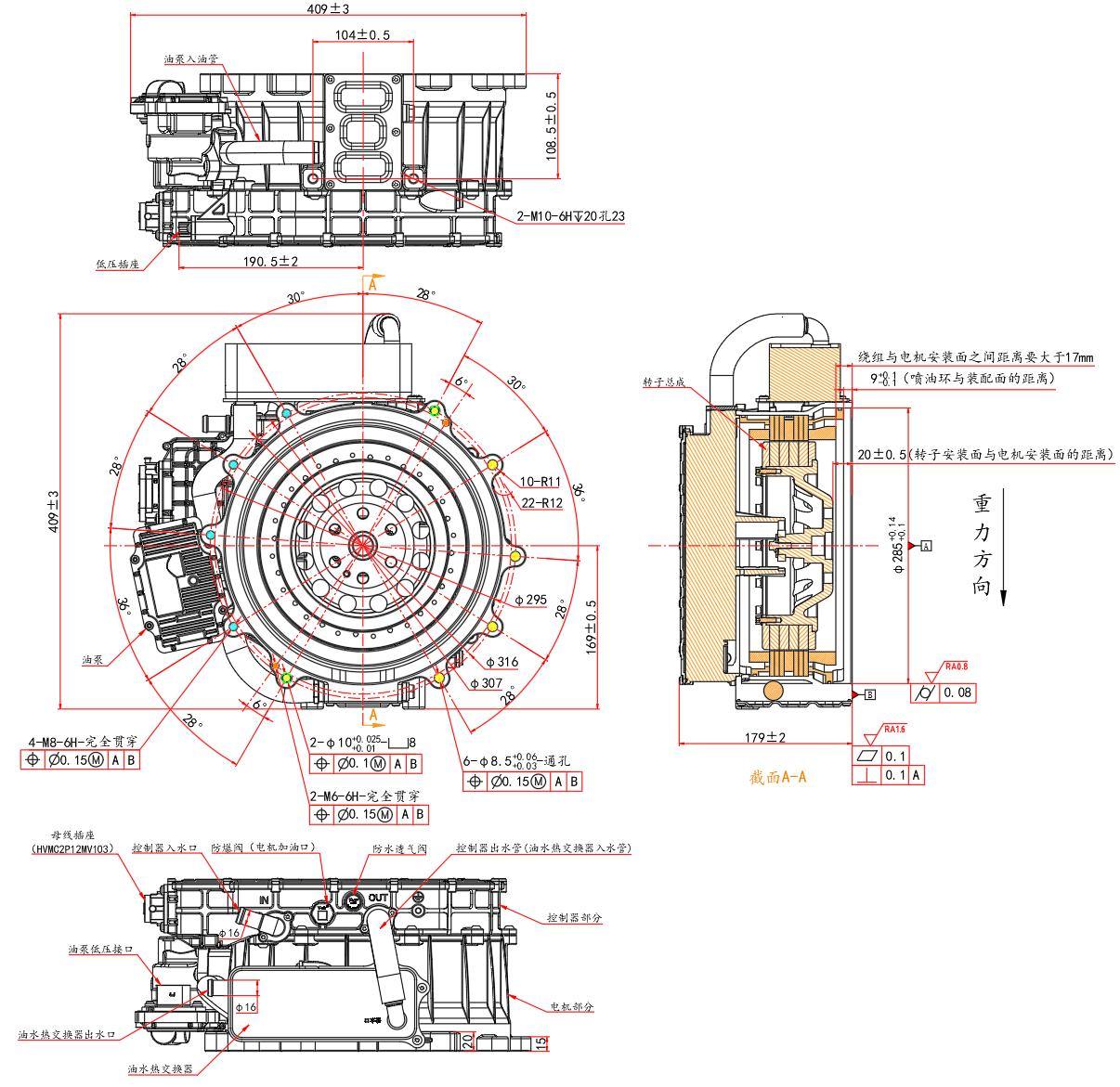 Ce groupe générateur-contrôleur intégré utilise un contrôleur en carbure de silicium (SiC) haute densité de puissance, alliant légèreté et robustesse. Il adopte une stratégie de contrôle hautement sécurisée pour garantir un fonctionnement fiable dans diverses conditions. Ce groupe est directement connecté au vilebrequin du moteur. Avec un refroidissement liquide (mélange à 50 % d'eau et d'éthylène glycol), le rendement du système atteint 94,5 %.